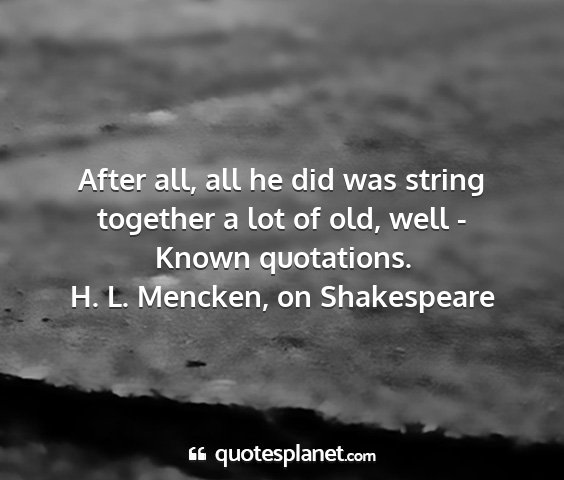 After all, all he did was string together a lot of old, well - Known quotations.H. L. Mencken, on Shakespeare