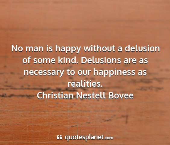 No man is happy without a delusion of some kind. Delusions are as necessary to our happiness as realities.Christian Nestell Bovee