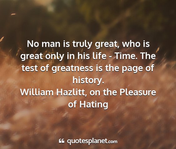William hazlitt, on the pleasure of hating - no man is truly great, who is great only in his...