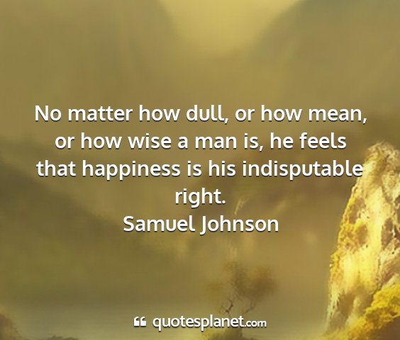 No matter how dull, or how mean, or how wise a man is, he feels that happiness is his indisputable right.Samuel Johnson