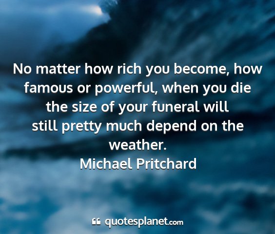 No matter how rich you become, how famous or powerful, when you die the size of your funeral will still pretty much depend on the weather.Michael Pritchard