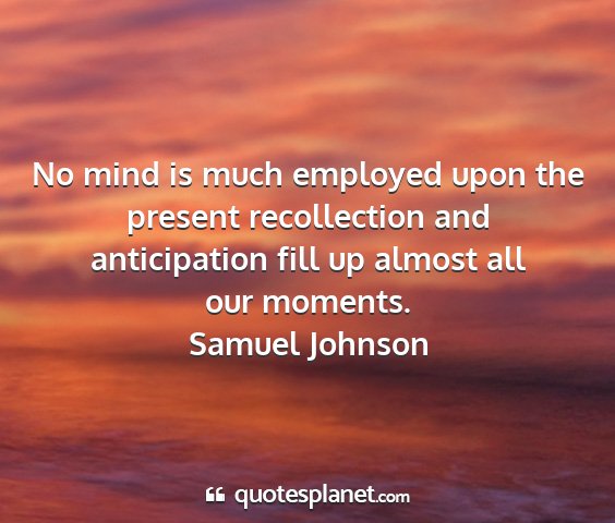 No mind is much employed upon the present recollection and anticipation fill up almost all our moments.Samuel Johnson