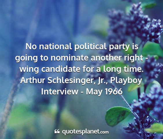 No national political party is going to nominate another right - wing candidate for a long time.Arthur Schlesinger, Jr., Playboy Interview - May 1966