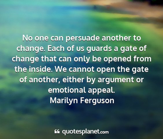 Marilyn ferguson - no one can persuade another to change. each of us...