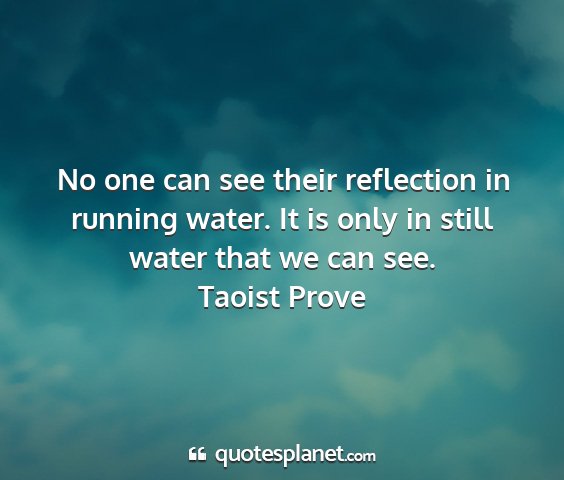 No one can see their reflection in running water. It is only in still water that we can see.Taoist Prove