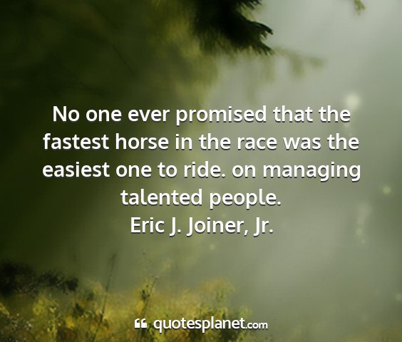 No one ever promised that the fastest horse in the race was the easiest one to ride. on managing talented people.Eric J. Joiner, Jr.