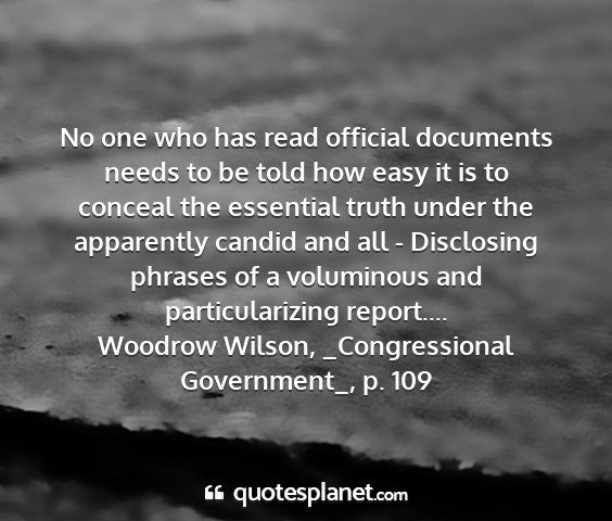No one who has read official documents needs to be told how easy it is to conceal the essential truth under the apparently candid and all - Disclosing phrases of a voluminous and particularizing report....Woodrow Wilson, _Congressional Government_, p. 109