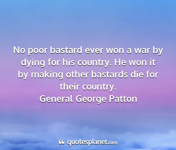 No poor bastard ever won a war by dying for his country. He won it by making other bastards die for their country.General George Patton