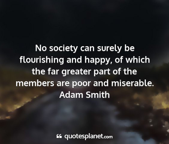 No society can surely be flourishing and happy, of which the far greater part of the members are poor and miserable.Adam Smith