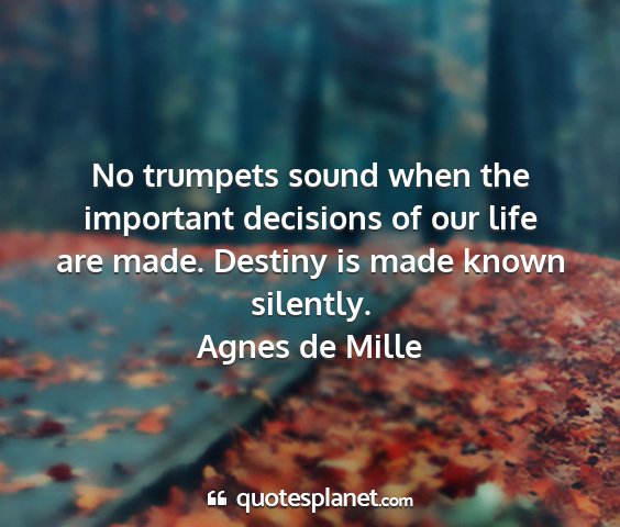 No trumpets sound when the important decisions of our life are made. Destiny is made known silently.Agnes de Mille