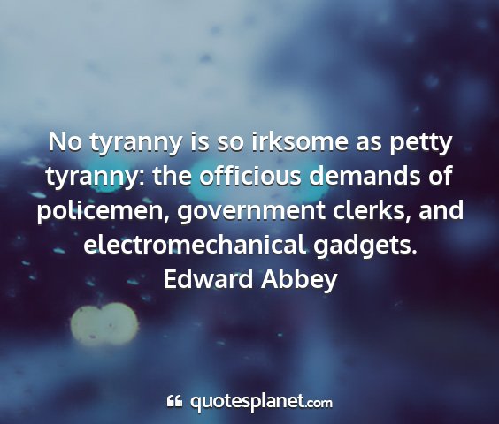 No tyranny is so irksome as petty tyranny: the officious demands of policemen, government clerks, and electromechanical gadgets.Edward Abbey