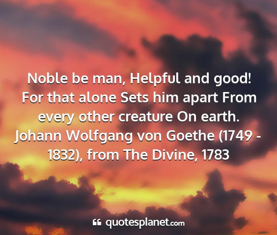 Noble be man, Helpful and good! For that alone Sets him apart From every other creature On earth.Johann Wolfgang von Goethe (1749 - 1832), from The Divine, 1783