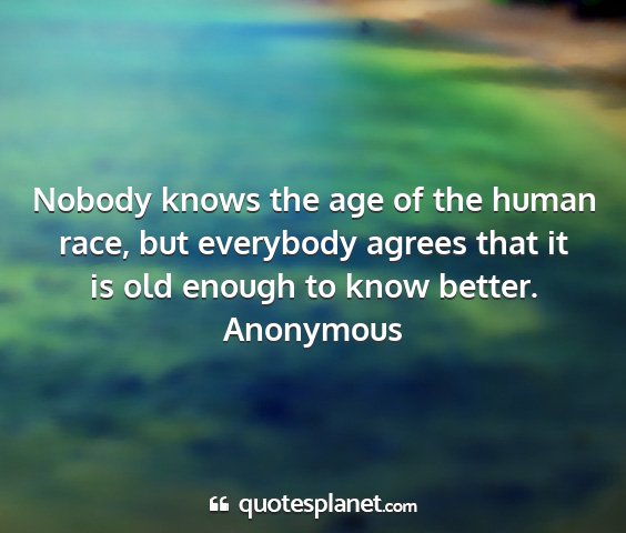 Nobody knows the age of the human race, but everybody agrees that it is old enough to know better.Anonymous