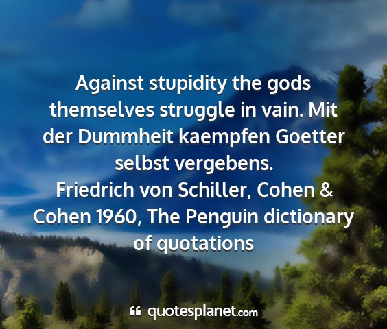 Against stupidity the gods themselves struggle in vain. Mit der Dummheit kaempfen Goetter selbst vergebens.Friedrich von Schiller, Cohen & Cohen 1960, The Penguin dictionary of quotations