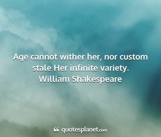 Age cannot wither her, nor custom stale Her infinite variety.