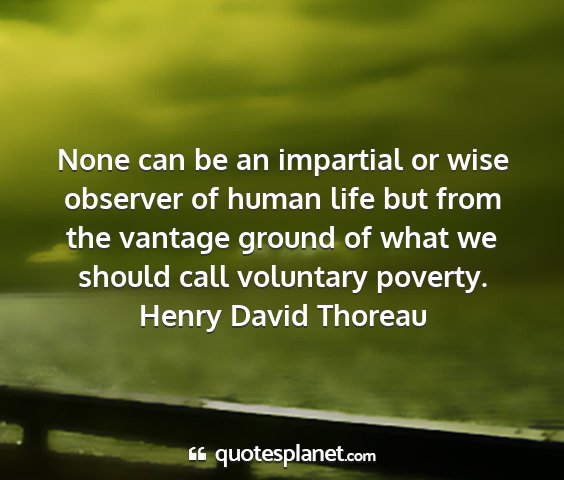 None can be an impartial or wise observer of human life but from the vantage ground of what we should call voluntary poverty.Henry David Thoreau