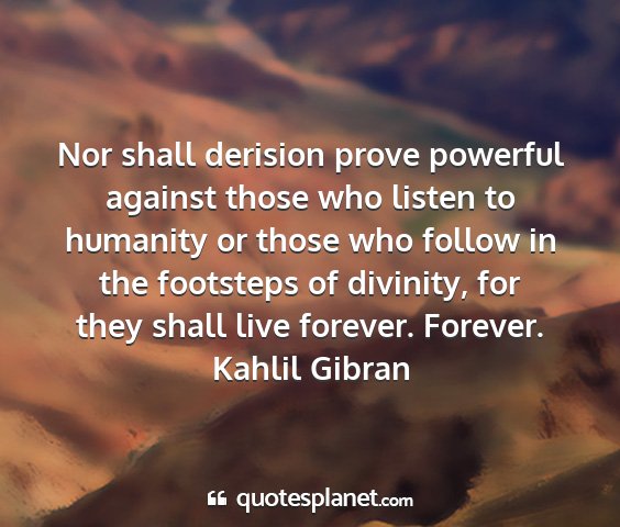 Nor shall derision prove powerful against those who listen to humanity or those who follow in the footsteps of divinity, for they shall live forever. Forever.Kahlil Gibran