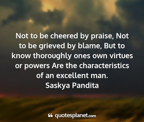 Not to be cheered by praise, Not to be grieved by blame, But to know thoroughly ones own virtues or powers Are the characteristics of an excellent man.Saskya Pandita