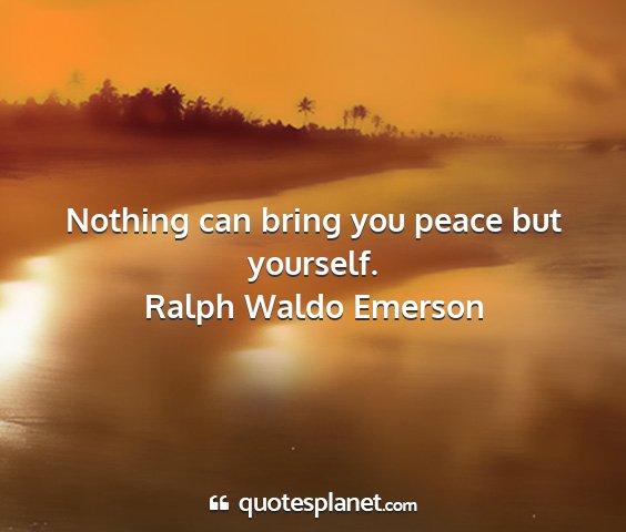 Nothing can bring you peace but yourself.