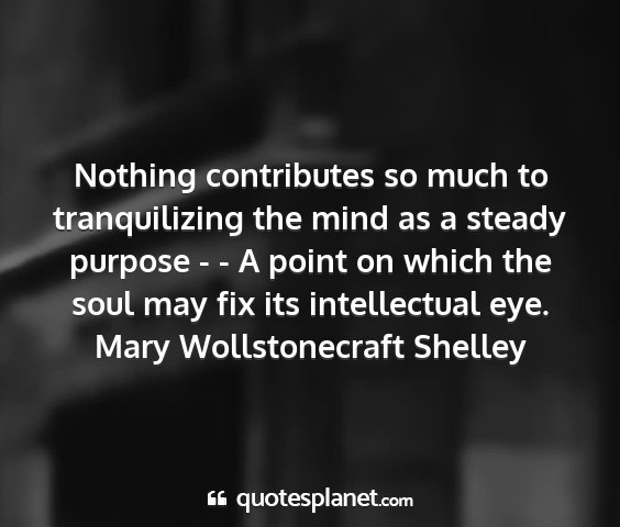 Nothing contributes so much to tranquilizing the mind as a steady purpose - - A point on which the soul may fix its intellectual eye.Mary Wollstonecraft Shelley