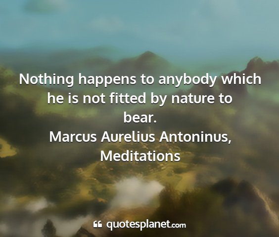 Nothing happens to anybody which he is not fitted by nature to bear.Marcus Aurelius Antoninus, Meditations