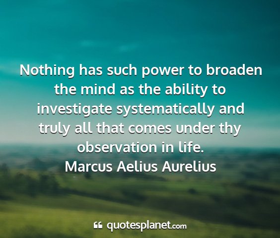 Nothing has such power to broaden the mind as the ability to investigate systematically and truly all that comes under thy observation in life.Marcus Aelius Aurelius