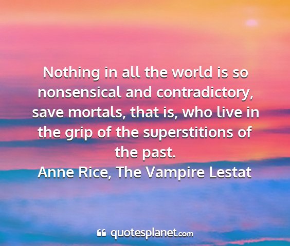 Nothing in all the world is so nonsensical and contradictory, save mortals, that is, who live in the grip of the superstitions of the past.Anne Rice, The Vampire Lestat