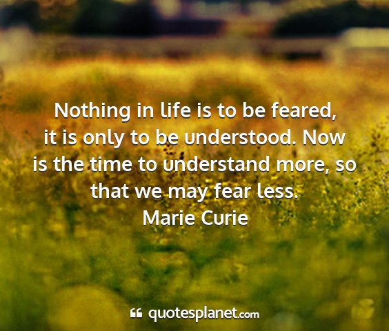 Nothing in life is to be feared, it is only to be understood. Now is the time to understand more, so that we may fear less.Marie Curie