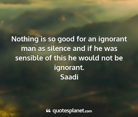 Nothing is so good for an ignorant man as silence and if he was sensible of this he would not be ignorant.Saadi
