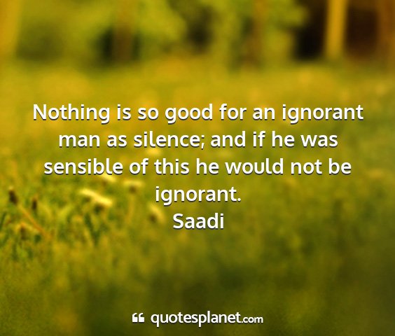 Nothing is so good for an ignorant man as silence; and if he was sensible of this he would not be ignorant.Saadi