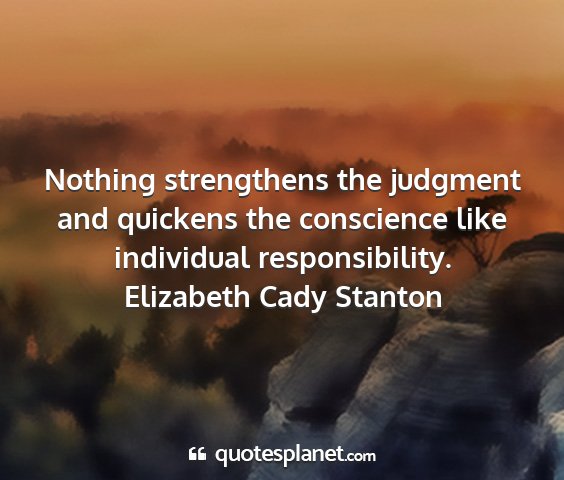 Nothing strengthens the judgment and quickens the conscience like individual responsibility.Elizabeth Cady Stanton