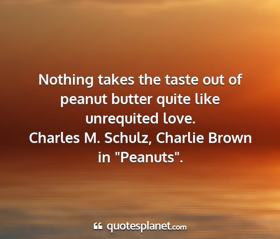 Nothing takes the taste out of peanut butter quite like unrequited love.Charles M. Schulz, Charlie Brown in "Peanuts".