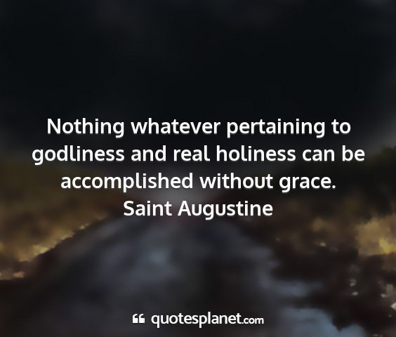 Nothing whatever pertaining to godliness and real holiness can be accomplished without grace.Saint Augustine