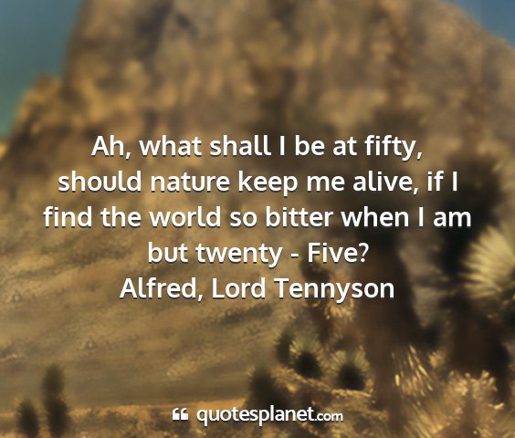 Ah, what shall I be at fifty, should nature keep me alive, if I find the world so bitter when I am but twenty - Five?Alfred, Lord Tennyson