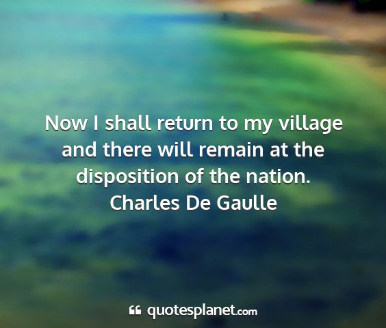 Now I shall return to my village and there will remain at the disposition of the nation.Charles De Gaulle