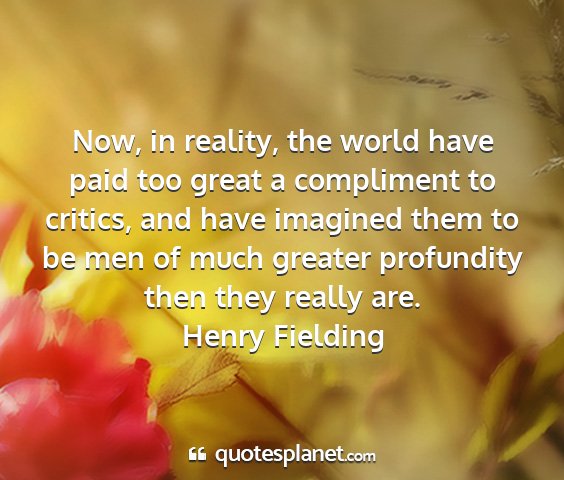 Now, in reality, the world have paid too great a compliment to critics, and have imagined them to be men of much greater profundity then they really are.Henry Fielding