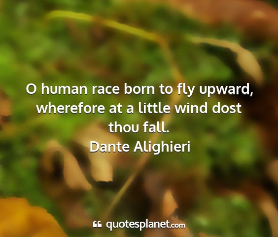 O human race born to fly upward, wherefore at a little wind dost thou fall.
