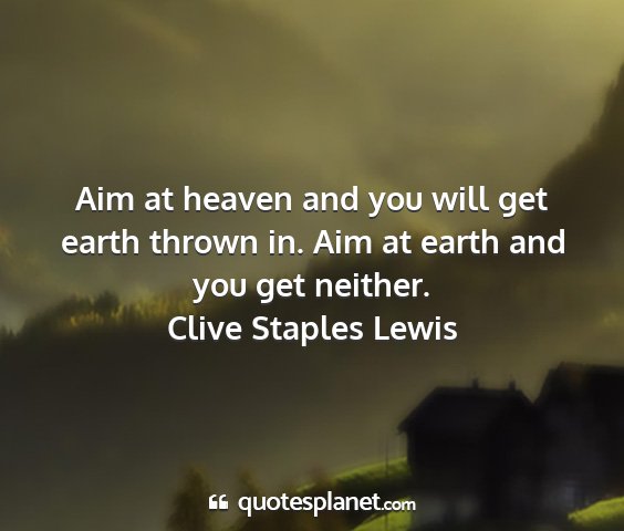 Aim at heaven and you will get earth thrown in. Aim at earth and you get neither.