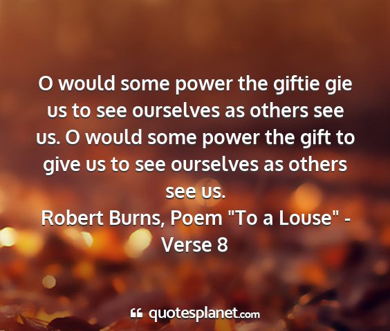 O would some power the giftie gie us to see ourselves as others see us. O would some power the gift to give us to see ourselves as others see us.Robert Burns, Poem "To a Louse" - Verse 8