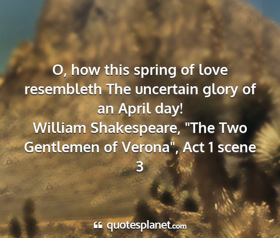 O, how this spring of love resembleth The uncertain glory of an April day!William Shakespeare, "The Two Gentlemen of Verona", Act 1 scene 3