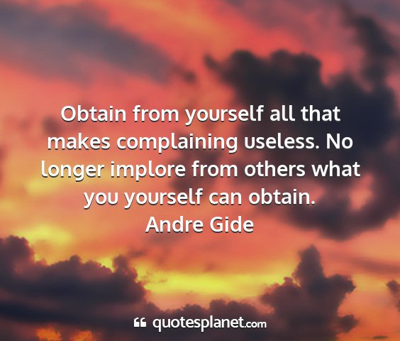 Obtain from yourself all that makes complaining useless. No longer implore from others what you yourself can obtain.Andre Gide