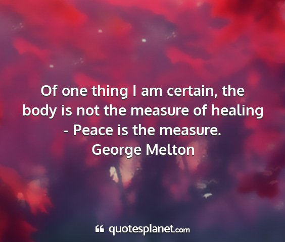 Of one thing I am certain, the body is not the measure of healing - Peace is the measure.George Melton