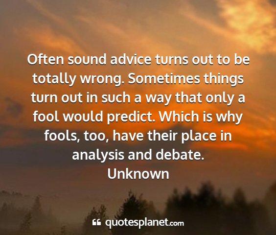 Often sound advice turns out to be totally wrong. Sometimes things turn out in such a way that only a fool would predict. Which is why fools, too, have their place in analysis and debate.Unknown