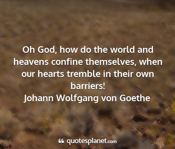 Oh God, how do the world and heavens confine themselves, when our hearts tremble in their own barriers!Johann Wolfgang von Goethe