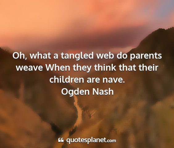 Oh, what a tangled web do parents weave When they think that their children are nave.