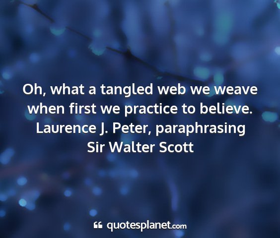Oh, what a tangled web we weave when first we practice to believe.Laurence J. Peter, paraphrasing Sir Walter Scott