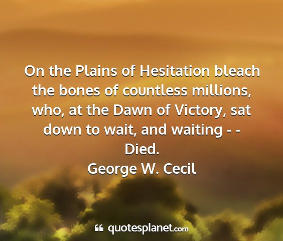 On the Plains of Hesitation bleach the bones of countless millions, who, at the Dawn of Victory, sat down to wait, and waiting - - Died.George W. Cecil