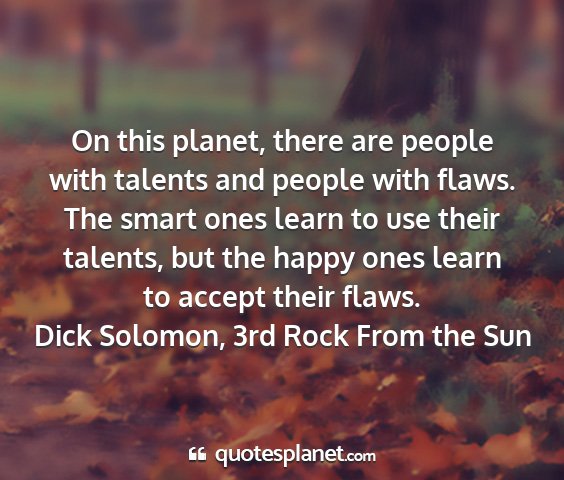 On this planet, there are people with talents and people with flaws. The smart ones learn to use their talents, but the happy ones learn to accept their flaws.Dick Solomon, 3rd Rock From the Sun