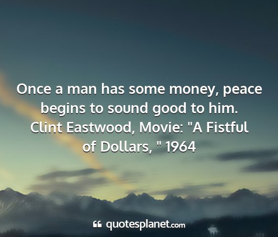 Once a man has some money, peace begins to sound good to him.Clint Eastwood, Movie: "A Fistful of Dollars, " 1964