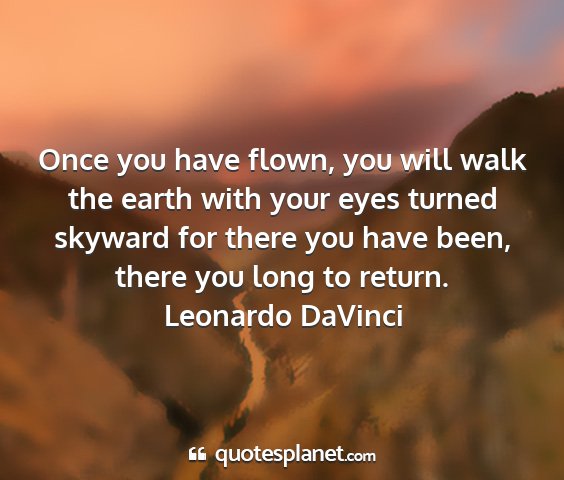Once you have flown, you will walk the earth with your eyes turned skyward for there you have been, there you long to return.Leonardo DaVinci